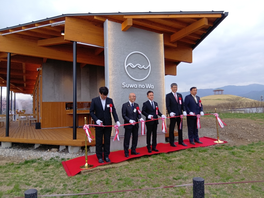 弊社が施工を担当いたしました、下諏訪町赤砂崎公園内の複合施設「Suwa no Wa(すわのわ)」がこのほど完成し、4月7日に現地にて開業式が執り行われました。